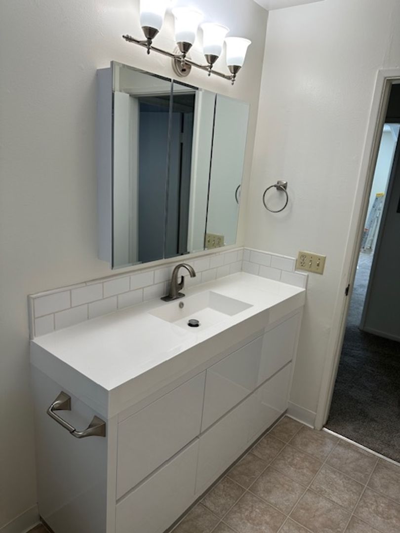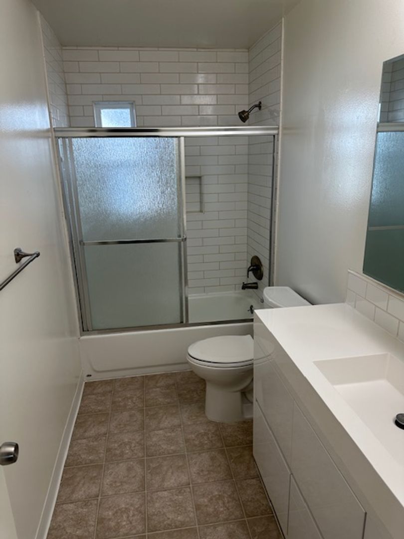 Beautiful unit just remodeled with tile shower and glass doors, custom vanity and mirrors, toilet, paint and all new flooring. New kitchen counter tops and refinished cabinets.
